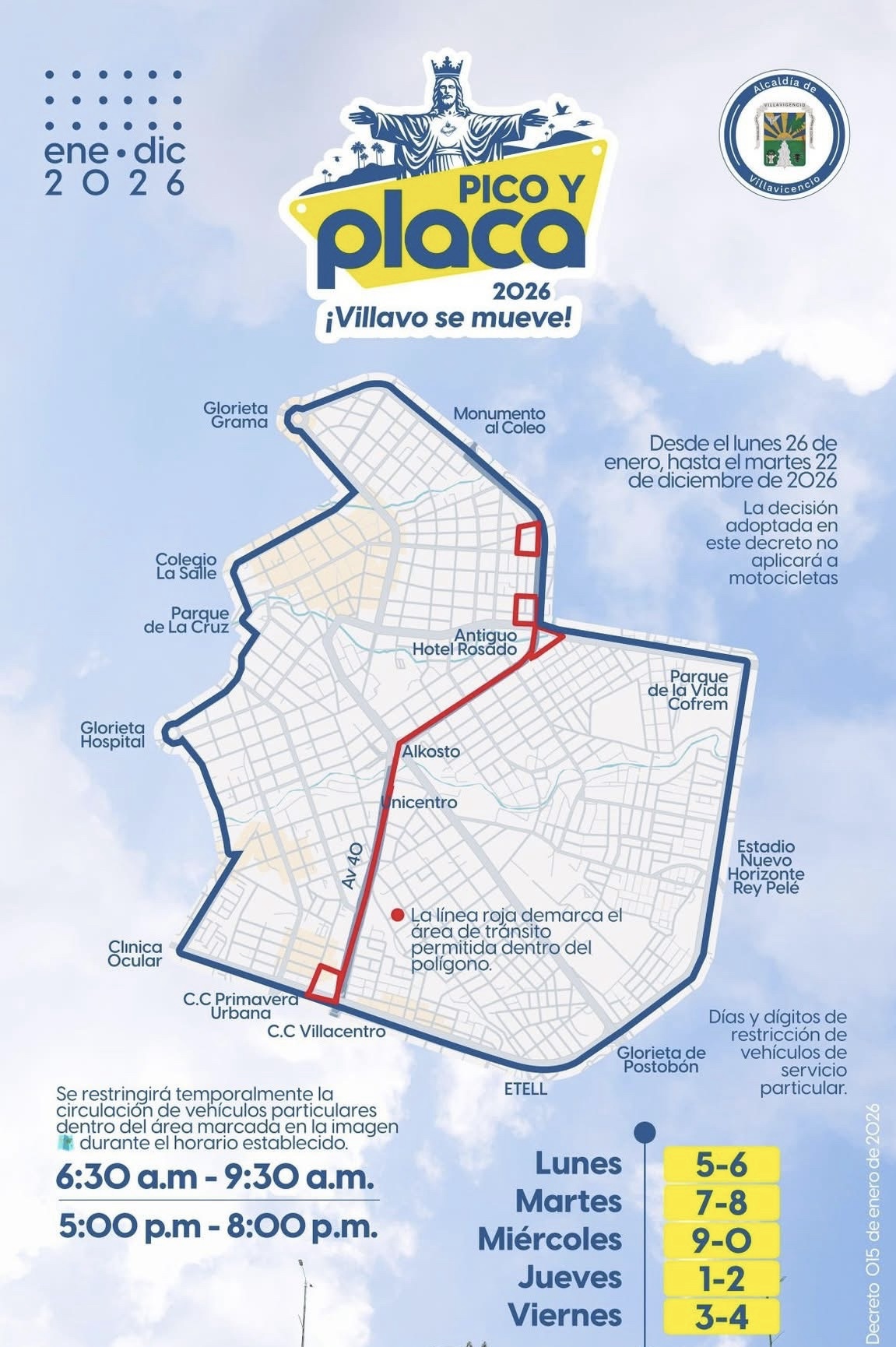 A partir del próximo lunes 26 de enero del 2026 se inicia el nuevo pico y placa en la ciudad de Villavicencio.