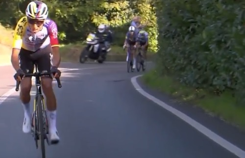 El Colombiano antioqueño Sergio Andrés Higuita, (XDS Astana Team), cruzó la meta en el quinto puesto, en la victoria del esloveno Tadej Pogacar, (UAE Team XRG), en los Tres Valles Varesinos. Pogacar, luciendo la...