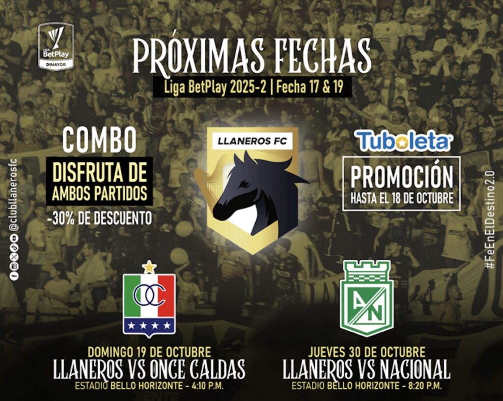 Llaneros FC jugará el próximo domingo 12 de octubre por la fecha 15 de la liga Betplay 2025-II ante el Independiente Santa Fe en el estadio Nemesio Camacho el Campín a las...