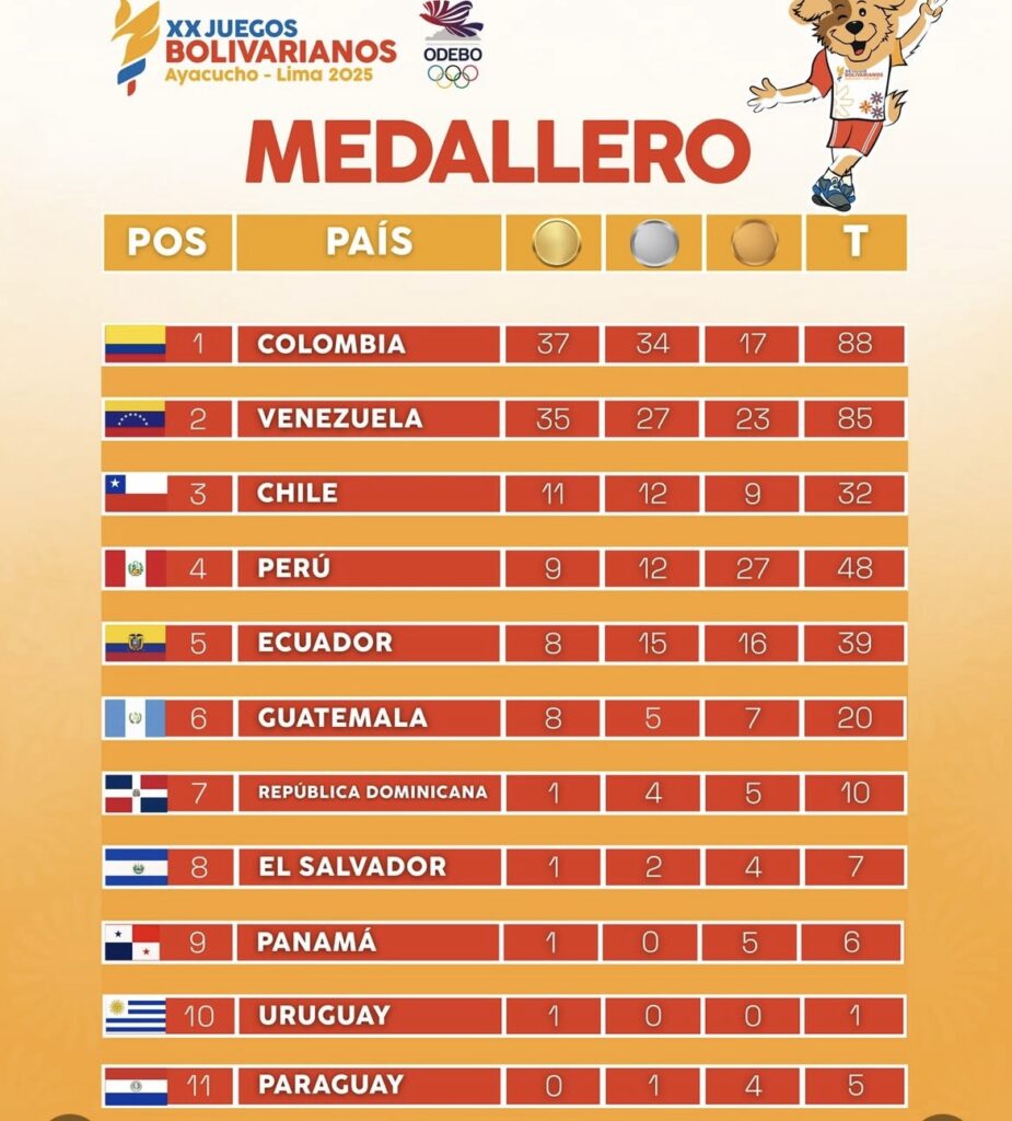 Con una mezcla de talento, entrega y orgullo tricolor, Colombia cerró el tercer día de competencias manteniéndose firme en el liderato general de los Juegos Bolivarianos Ayacucho–Lima 2025.