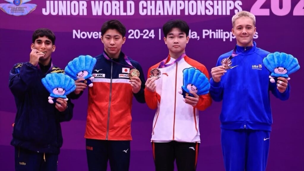 Este lunes, en las paralelas, Camilo realizó una rutina con 5.300 de dificultad y 8.566 de ejecución, para un total de 13.866 y el primer lugar en el podio, que compartió con el japonés Nao Ojima, tercero el Chino Lambin Yang.