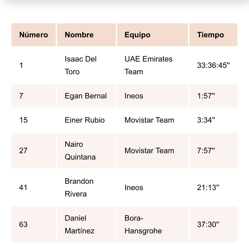 En cuanto a Egan Bernal, el colombiano ascendió en la general y ahora se metió al top 10 al ubicarse en la séptima posición a 1’57” del líder.