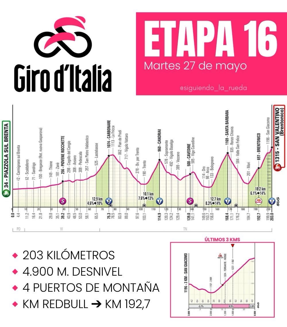 📍 𝗣𝗥𝗘𝗩𝗜𝗔: ETAPA 16 – GIRO D’ITALIA