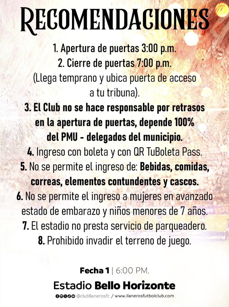 Llaneros debutará como local en su primer juego en Liga Betplay. El cuadro de Villavicencio desea un resultado que lo haga acomodarse lejos del descenso, donde actualmente no se encuentran. Llaneros mantuvo a Jose Luis García de 37 años cómo entrenador, el segundo más joven de la liga. A su vez, sumó 14 jugadores nuevos, entre ellos se destacan el extremo Luis Miranda y el defensor Francisco Meza.