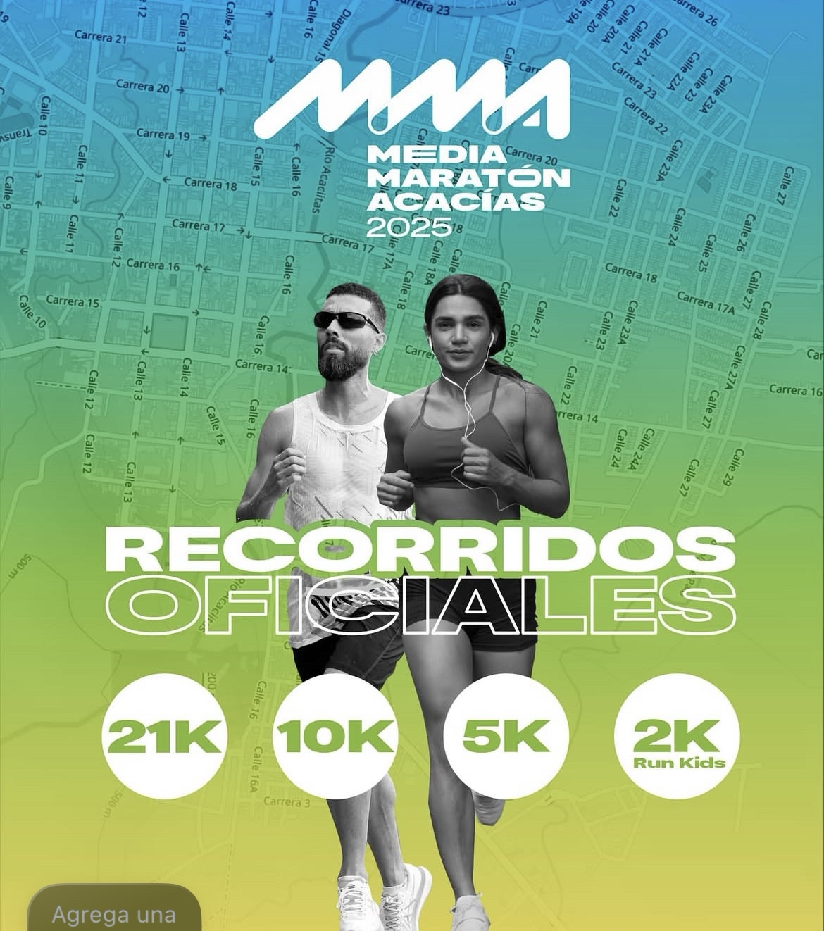 El día domingo muy temprano desde la cinco de la mañana se inicia la “I Media Maratón de Acacias MMA” con la zona de calentamiento, aeróbicos de parte del instituto de deporte, sobre las 5:30 todos los 21k a las Torres de salida, sonido y juegos artificiales, muy a el estilo de las grandes carreras, 5:40 partida oficial, luego igualmente lo harán los running de 10k sobre las 6:00 am y finalizará la salida sobre las 6:20 los 5K.