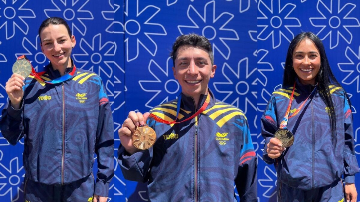 En la rama femenina, Colombia firmó un histórico 1–2 con Ana María Roa y Diana Carolina Pinilla; mientras que en los hombres, Iván Felipe López se consagró campeón bolivariano del MTB, para redondear una jornada dorada para el Equipo Colombia. (foto portada los tres medallistas)