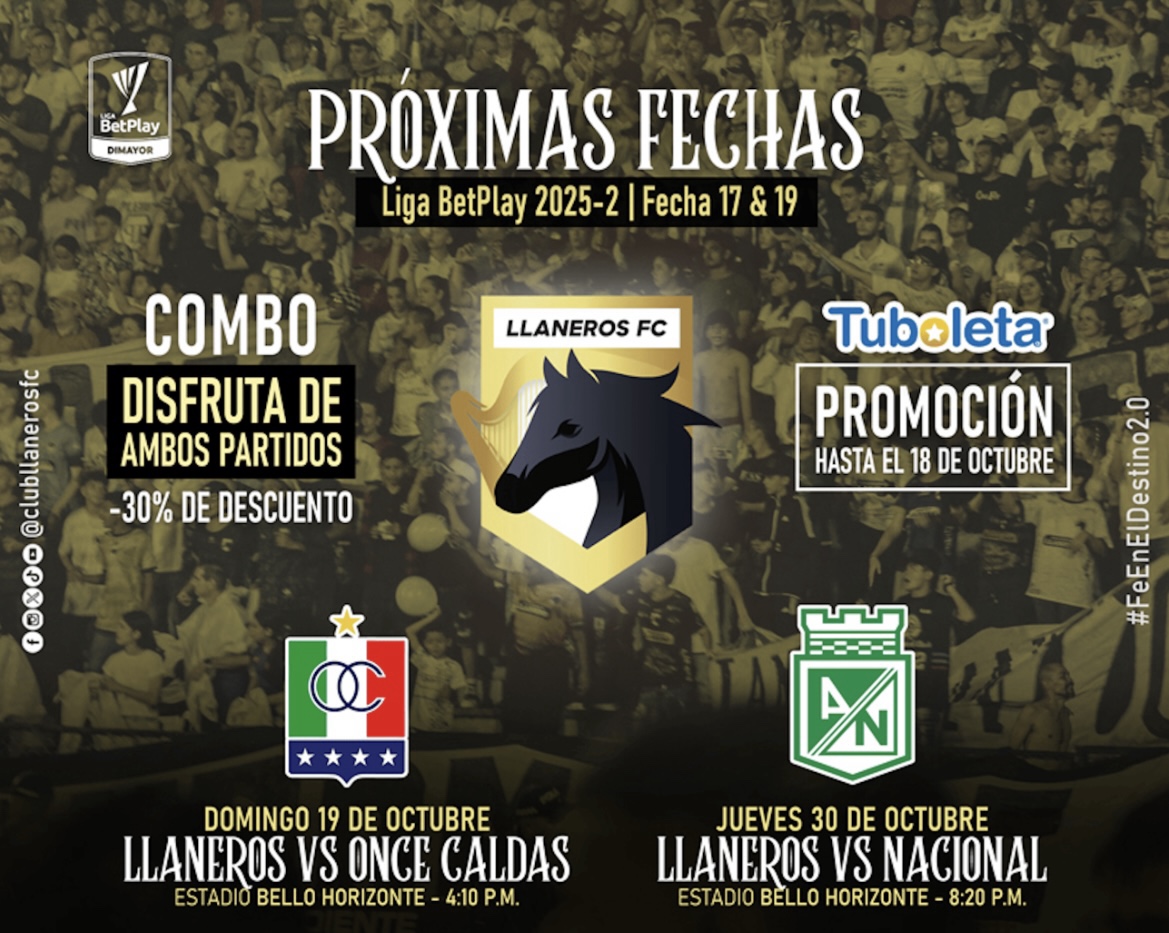 • Llaneros vs Atlético Nacional | 30 de octubre de 2025.