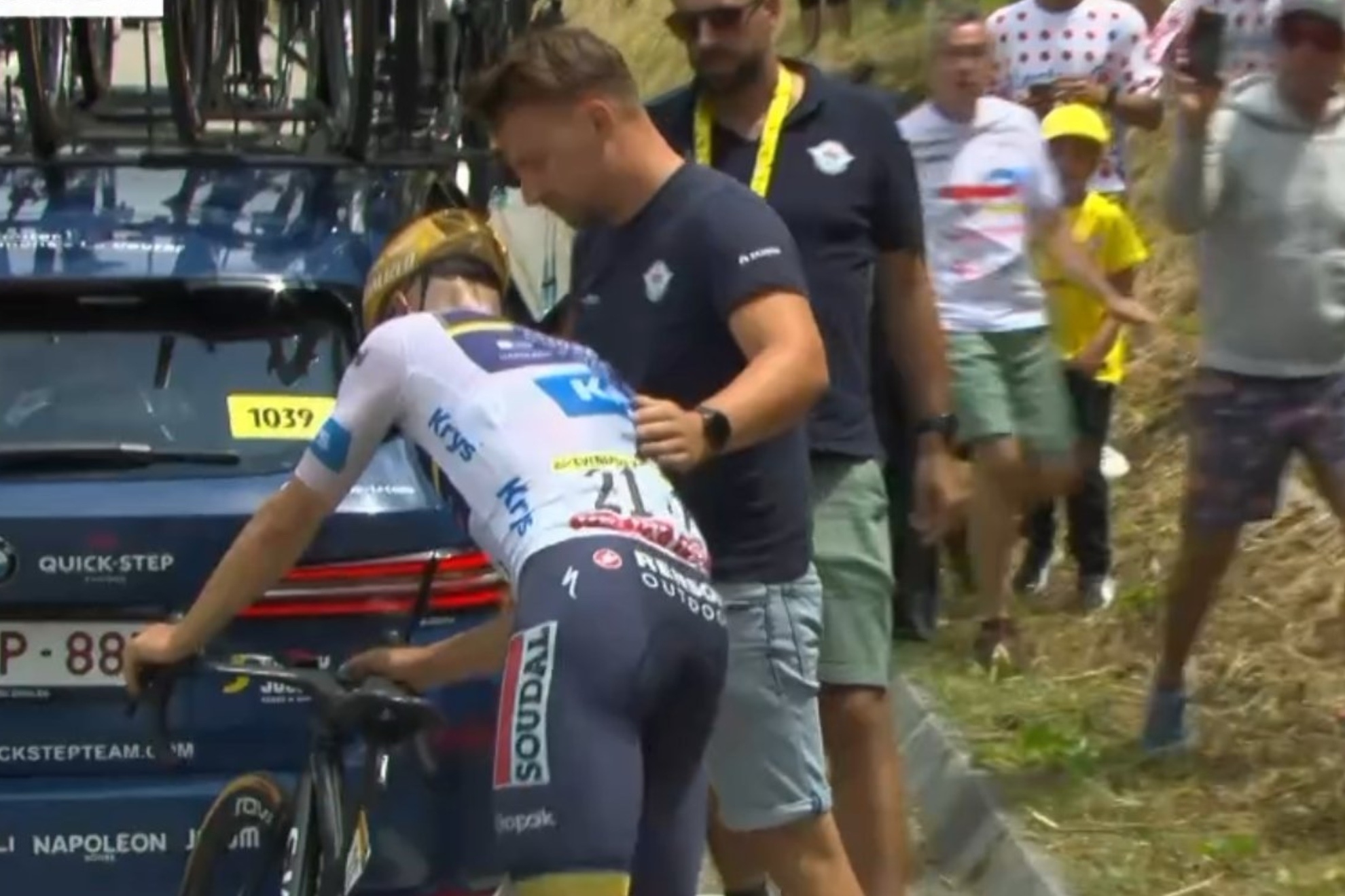 Hoy tras perder contacto en el primer puerto (el Tourmalet) a más de 100 kilómetros de meta, le dijo a su compañero de equipo Pascal Eenkhoorn que siga adelante y finalmente decidió dar el adiós al Tour. El belga ganó una crono, y ostentaba la malla blanca y el tercer puesto de la general al abandonar. No lo hizo sin antes regalarle su caramañola a un niño.
